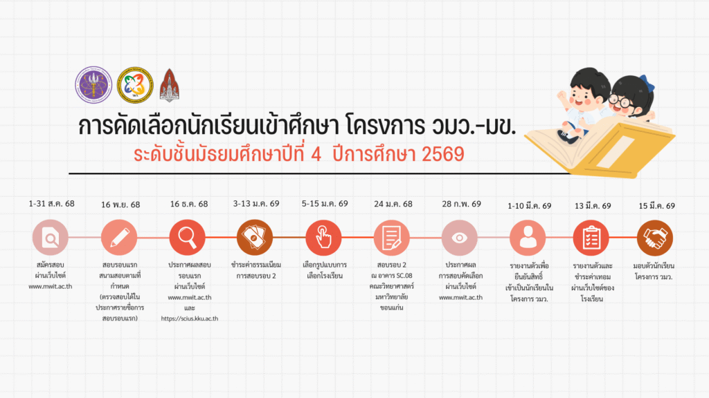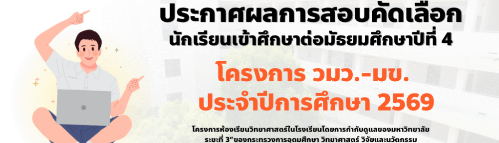 ประกาศผลการสอบคัดเลือกนักเรียนเข้าเป็นนักเรียนชั้นมัธยมศึกษาปีที่ 4 โครงการ วมว.-มข. ปีการศึกษา 2569